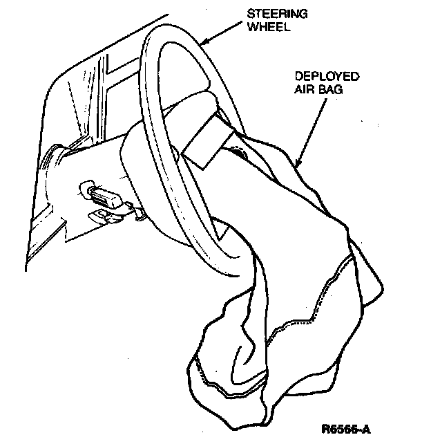 This procedure is to be used in the event that a vehicle with a live air bag is to be scrapped. Scrapping a vehicle may be required due to severe damage in a non-air bag deployable accident or at the end of the vehicle's useful life. This procedure assumes that the air bag wiring remains intact; this is, no fault codes are indicated by the readiness indicator, the system proves out correctly and the vehicle's battery is still in place (or one has been provided). This procedure is to be performed outdoors, away from other personnel, since the deploying air bags make a loud report upon actuation.