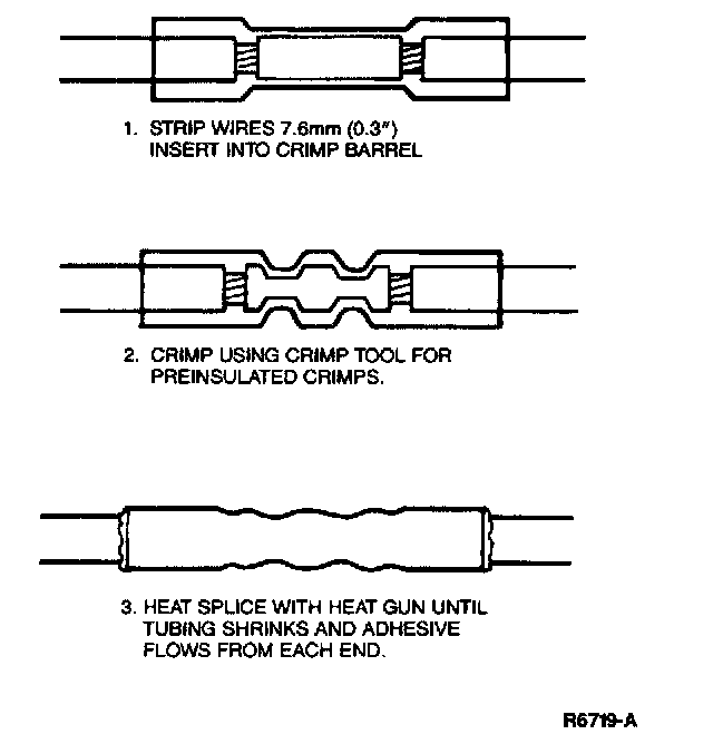 A waterproof butt splice connector should be used on all wiring serviced in the engine compartment. A head-shrink nylon splice prevents water, salt, condensation and heat from affecting the serviced wiring.