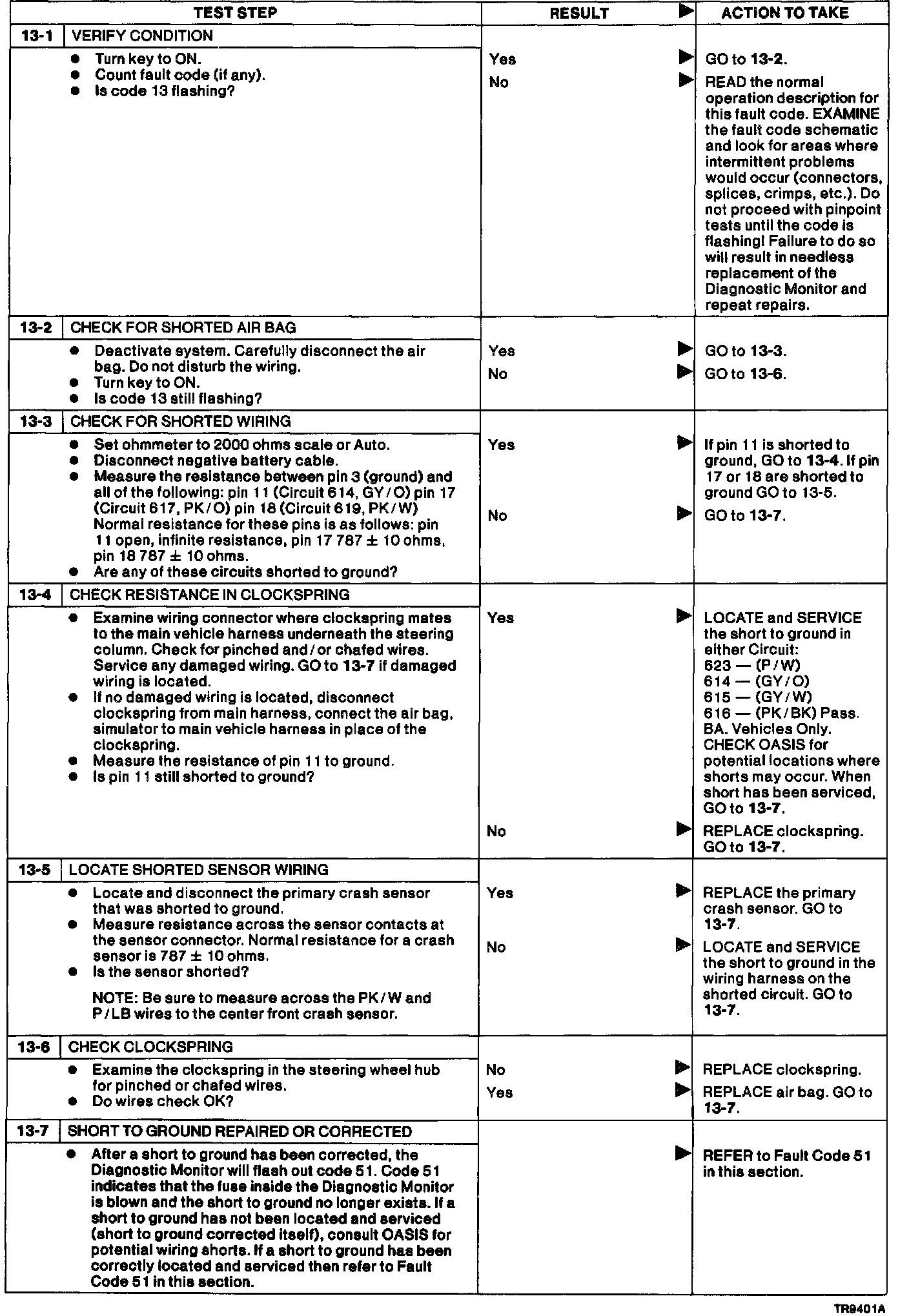 Test 13 - Air Bag or Crash Sensor Circuit Short to Ground