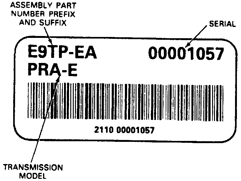 The identification tag includes transmission model, assembly part number and Serial number. The Identification tag is attached to the lefthand side of the manual level position sensor.