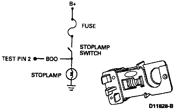 The Brake On/0ff switch tells the powertrain control module when the brakes are applied. The switch is closed when the brakes are applied and open when they are released.