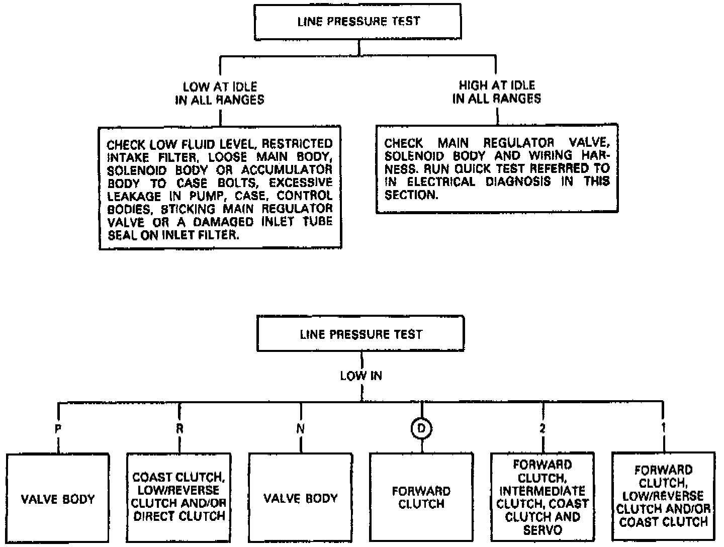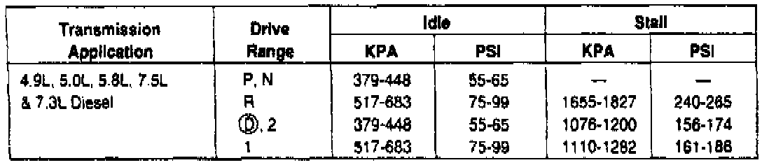 2. Start engine and check line pressures, following the procedures as shown in the Line Pressure Test Chart.
