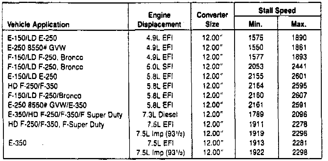 4. If stall speed is above specified limits, refer to the Stall Speed Diagnosis Chart.