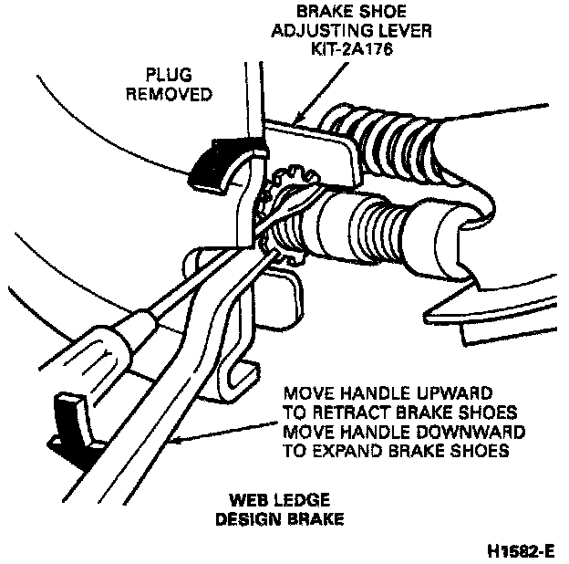 8. Remove brake shoe retracting springs. For additional information see Brake Spring Removal and Installation Notes.