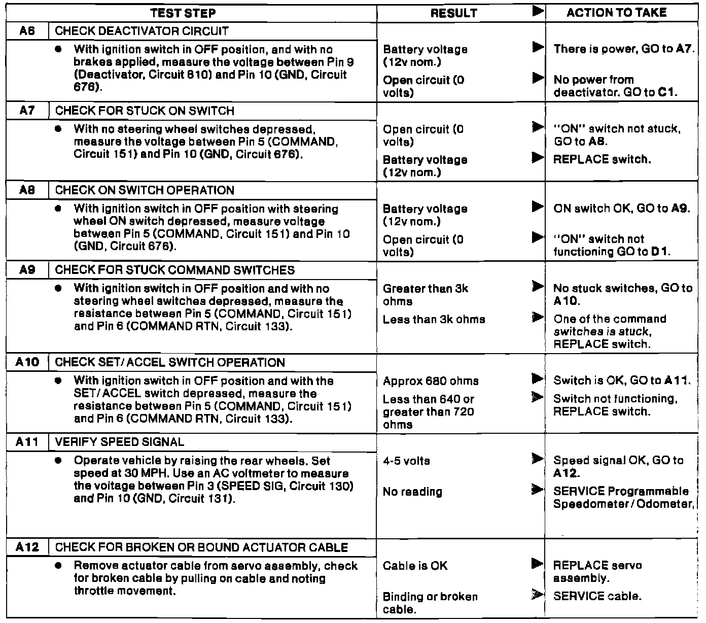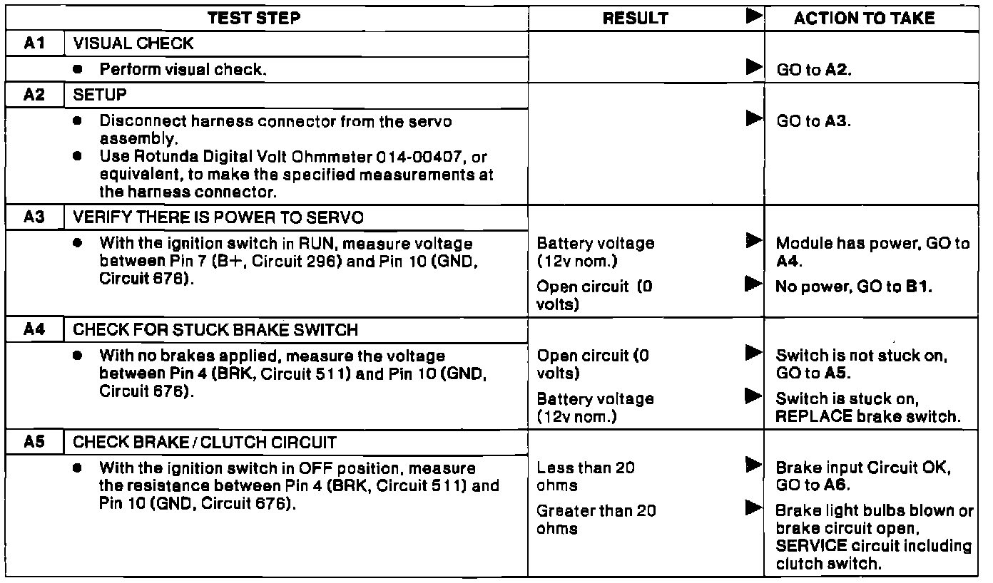 Diagnostic Test A, Speed Control Inoperative: