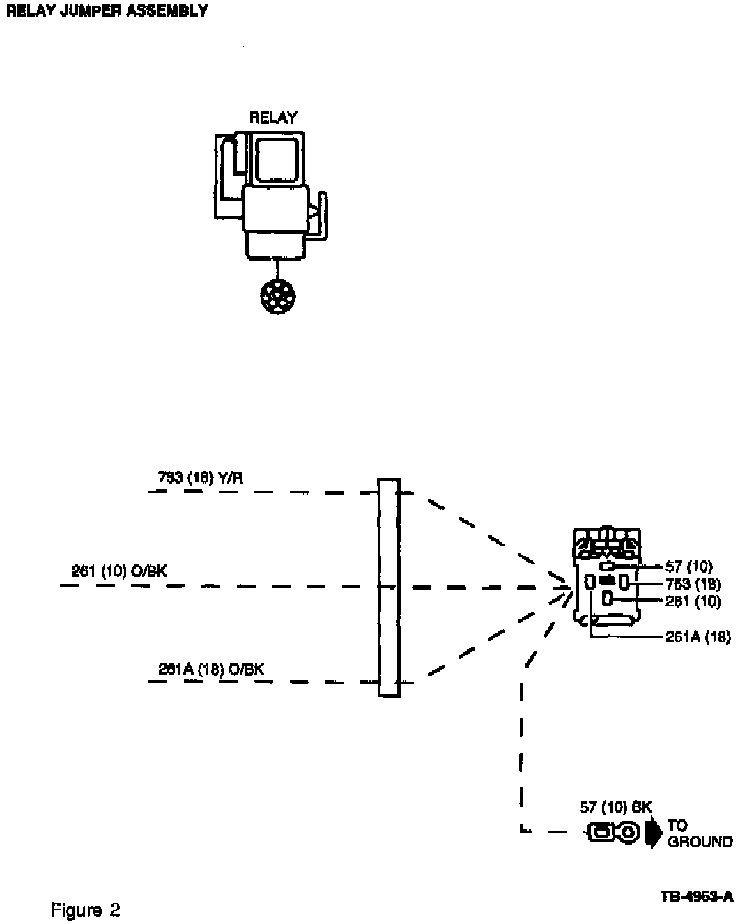 8. Take these two (2) ends and perform a three (3) circuit splice with the 18 gauge Yellow/Red circuit on the relay jumper assembly (Figure 4).