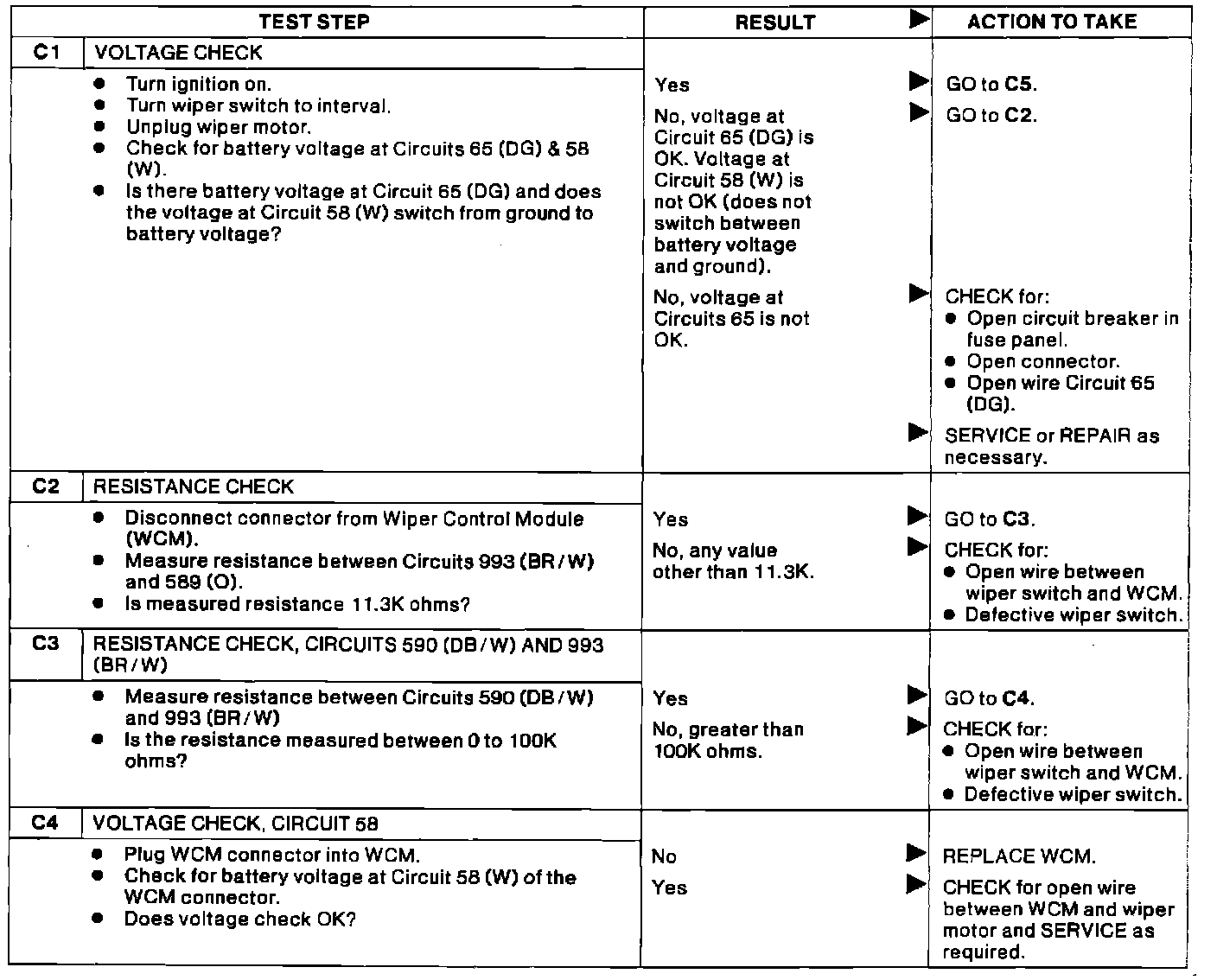Diagnostic Test C, Wipers Inoperative At Low Speed Interval: