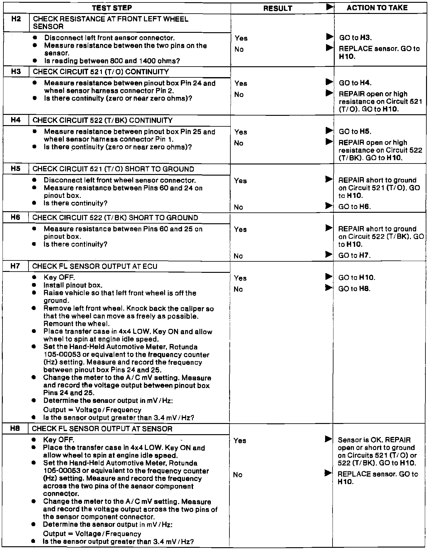 Pinpoint Test H, Front Left Speed Sensor Diagnosis: