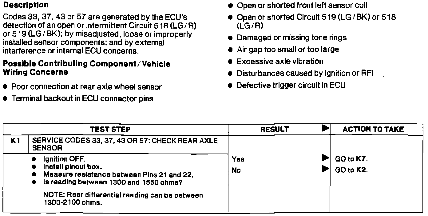K DTC 33, 37, 43, 57 Rear Axle Sensor