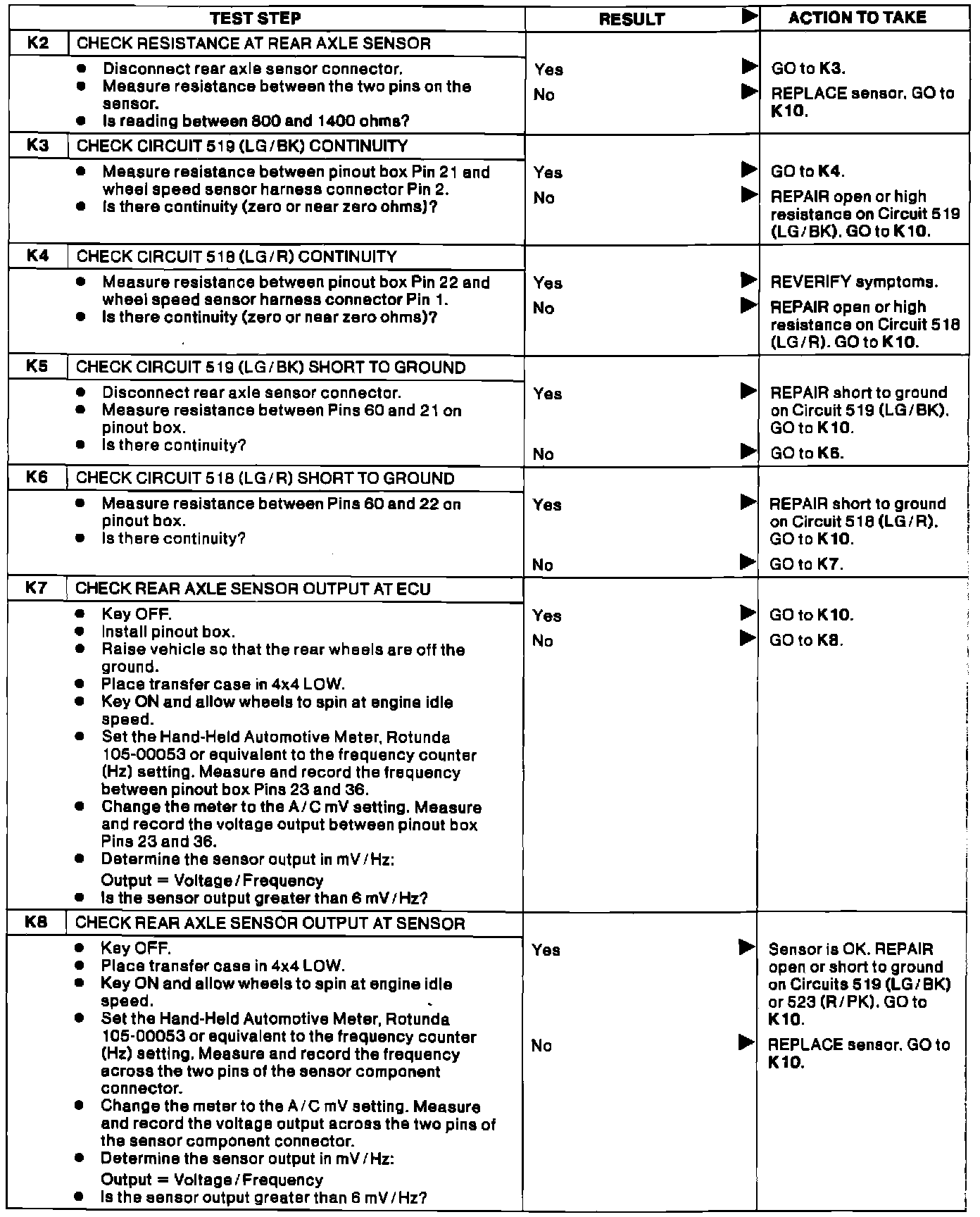 Pinpoint Test K, Rear Axle Speed Sensor Diagnosis: