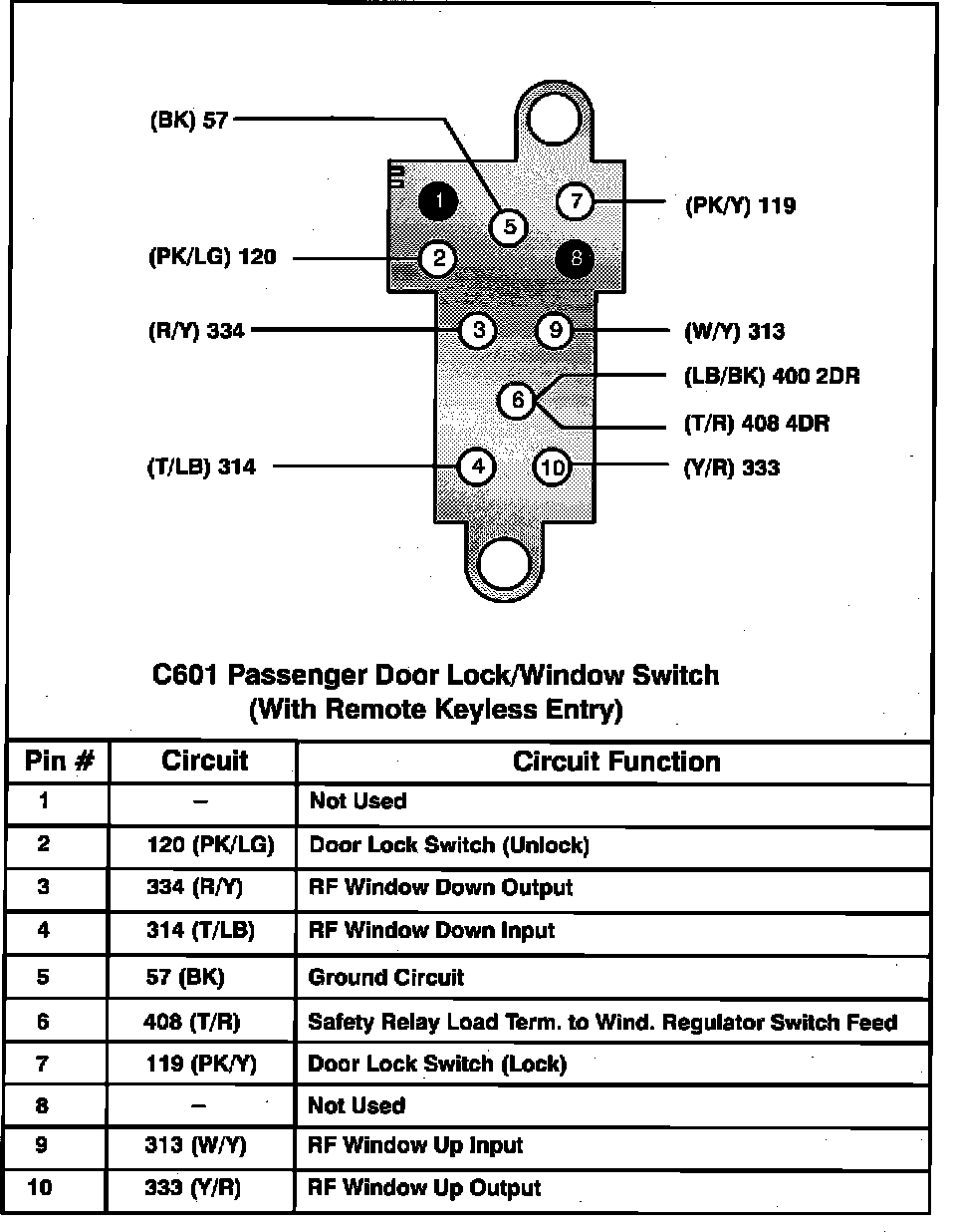 Passenger Door Lock/Window Switch (With Remote Keyless Entry):