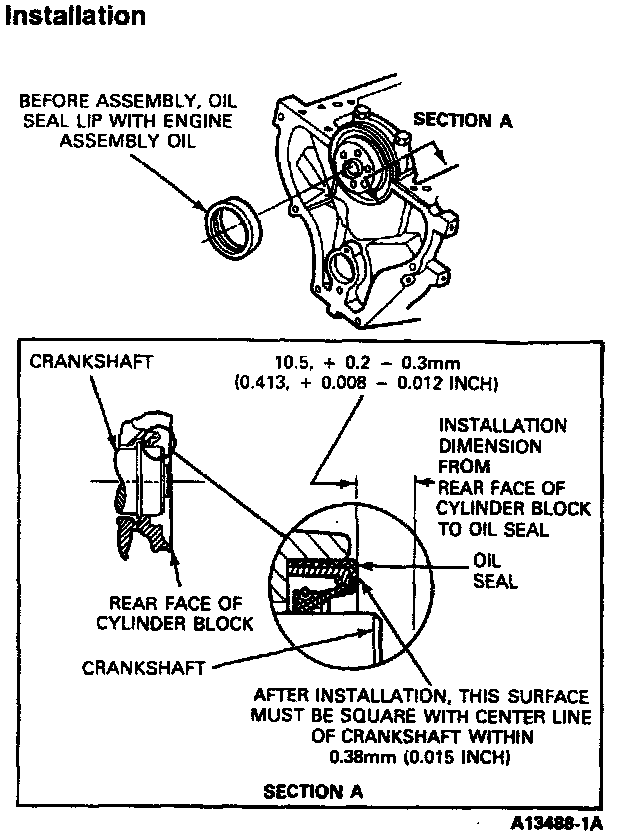 7. Clean the oil seal recess in the cylinder block and main bearing cap. Inspect and clean the oil seal contact surface on the crankshaft.