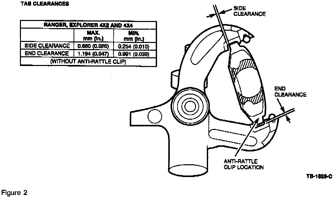 h. Check the tab clearances and install anti-rattle clip on the lower pad tab (Figure 2).
