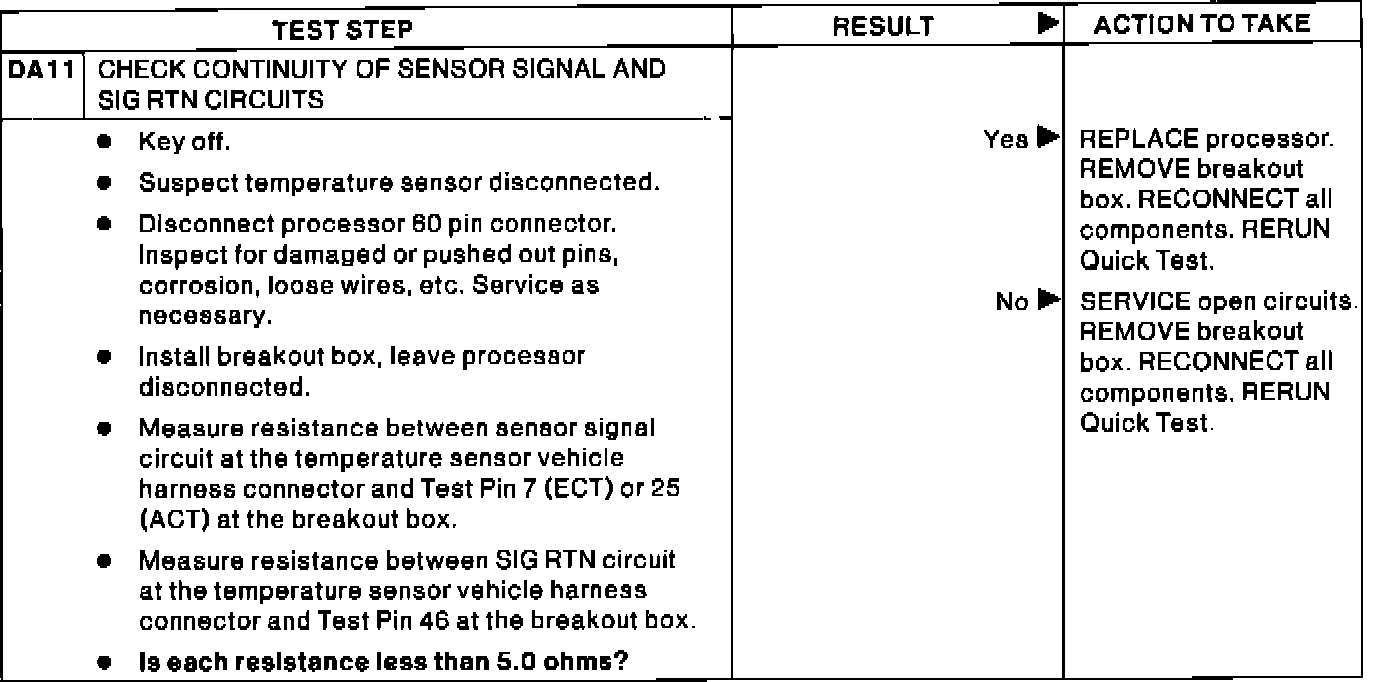 DA11 - Check Continuity of Sensor Signal and SIG RTN Circuits