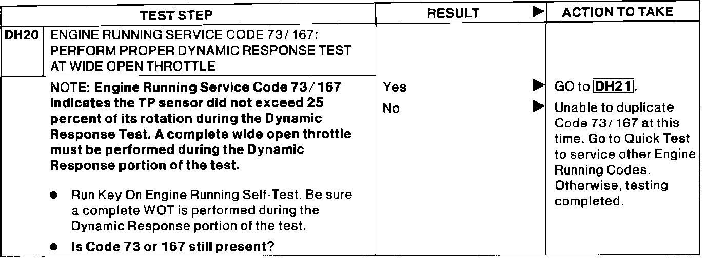 DH20 - Engine Running Service Code 73/167