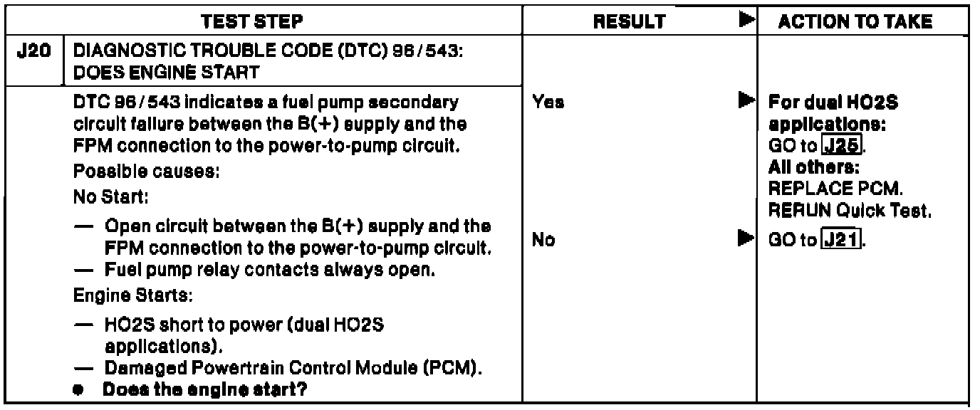 J20 - Code 96/543: Does Engine Start