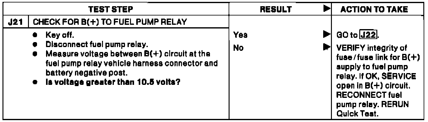 J21 - Check For B(+) to Fuel Pump Relay