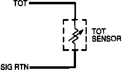 The Transmission Oil Temperature (TOT) sensor is a thermistor that changes resistance in response to temperature. The TOT sensor resistance decreases as the surrounding fluid temperature increases. The resistance variation is converted into a voltage signal and sent to the processor to give an indication of the transmission fluid temperature.