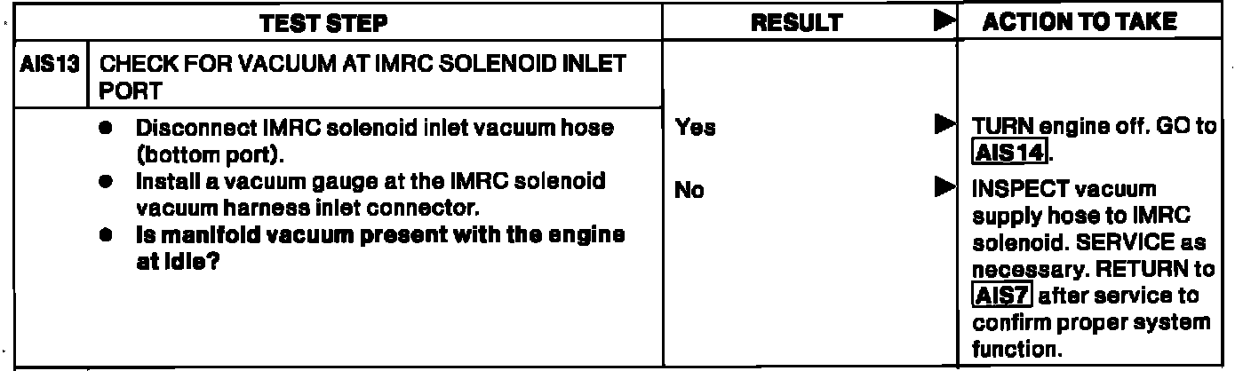 AIS13 - Check For Vacuum At IMRC Solenoid Inlet Port:
