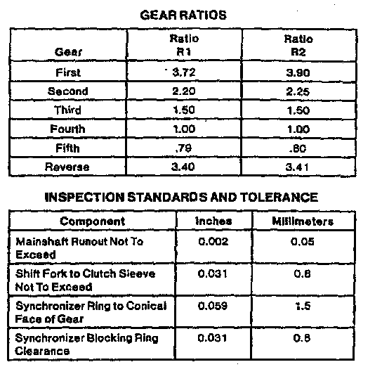 M5OD 5-spd M/T, Gear Ratios/Tolerances (Ranger):