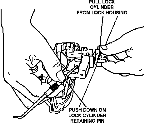 The following procedure applies to vehicles that have functional lock cylinders, ignition keys available for the vehicle, or ignition key numbers that are known and the proper key can be made.Fig. 4 Removing Ignition Lock Cylinder: