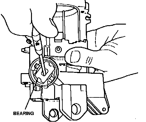 10. Insert tip of a suitable screwdriver into double-D slot of bearing, Fig. 6, rotate 90°, then remove bearing.