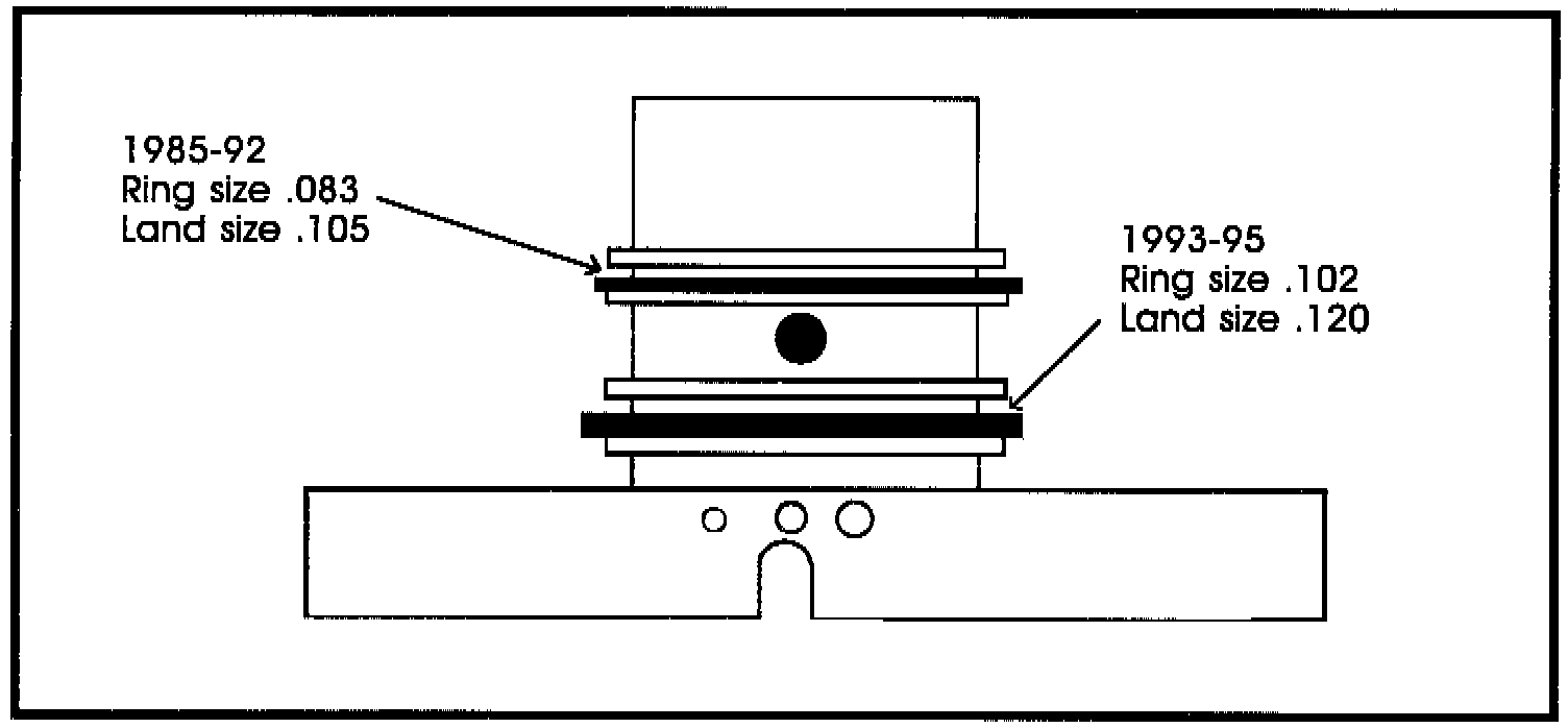 The direct clutch sealing rings are available in two thicknesses. 1985-92 models use rings that are .083" in thickness. The 1993-95 ring is .102" thick.
