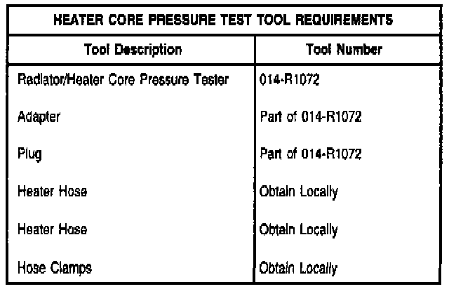 COOLING SYSTEM - "ON-VEHICLE" HEATER CORE PRESSURE TEST REQUIRED FOR WARRANTY CLAIM