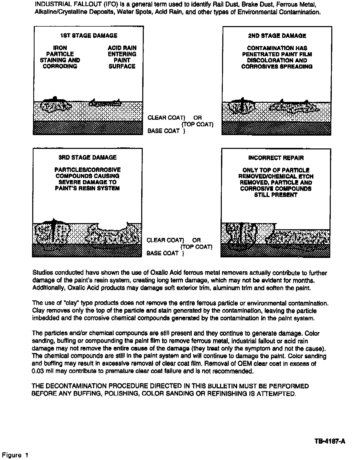 THIS DECONTAMINATION PROCEDURE IS DESIGNED TO REMOVE SURFACE CONTAMINANTS FROM THE PAINT ON VEHICLES THAT HAVE BEEN CONTAMINATED UP TO 120 DAYS. VEHICLES WHICH HAVE EXPERIENCED THE CONDITION LONGER THAN THIS PERIOD MAY REQUIRE AN ADDITIONAL TREATMENT TO REMOVE FERROUS METAL CONTAMINANTS.