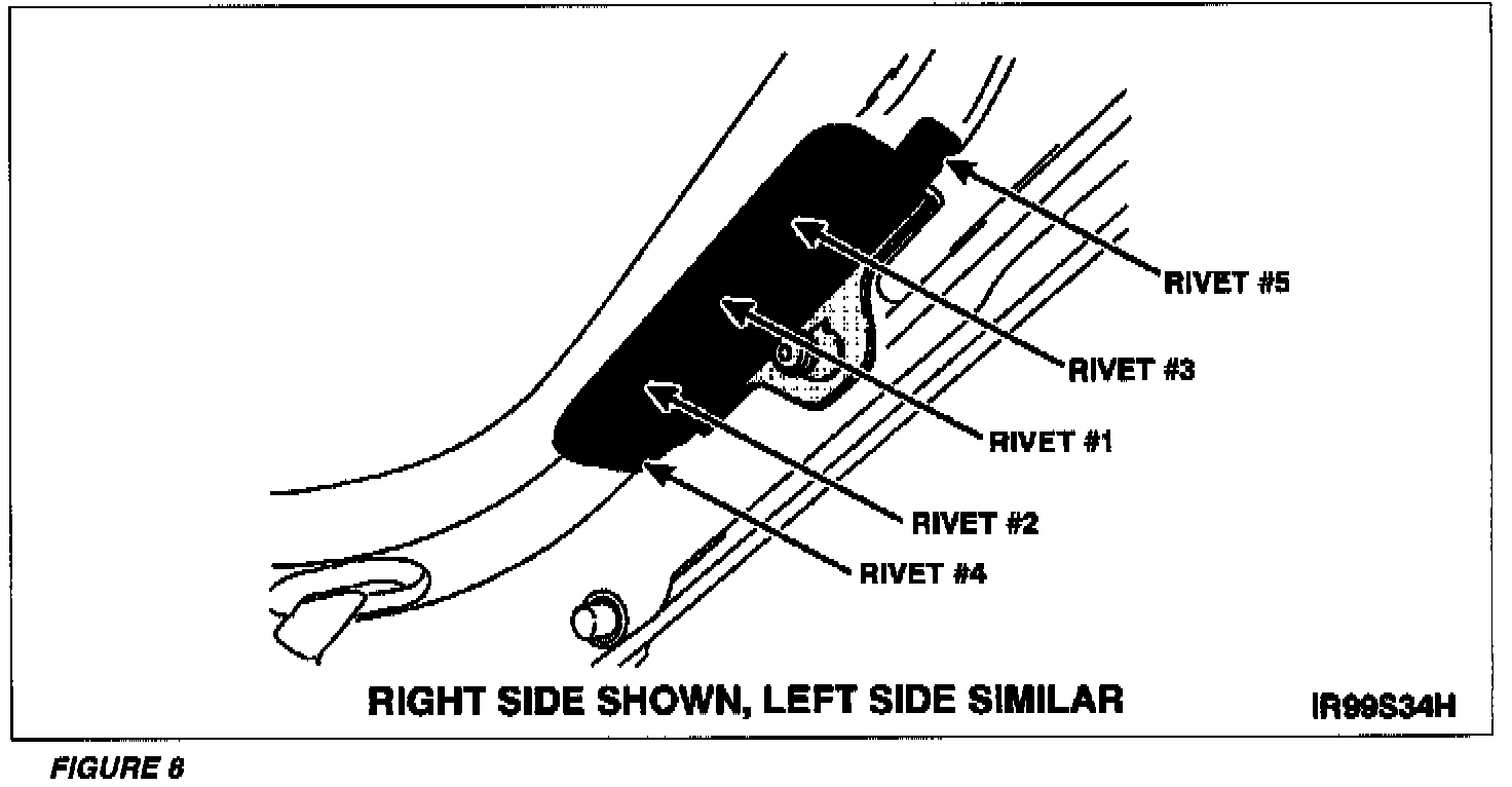 16. Install two (2) rivets in the locations shown in Figure 6. Proceed to Step 20 if not separated.