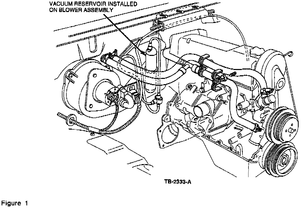 Installation of a vacuum hose/reservoir/check valve assembly will provide sufficient vacuum level to maintain the heater system fresh air door in the closed position. Refer to the following procedure for service details.