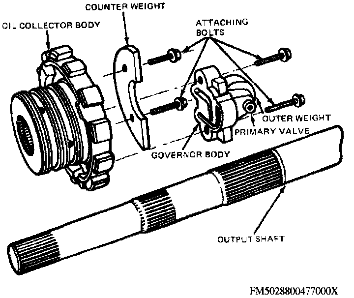 NOTE: When governor body attaching bolts are removed, the governor components are no longer retained in position to the governor body. Care must be taken not to drop the governor body and components when the attaching bolts are removed.