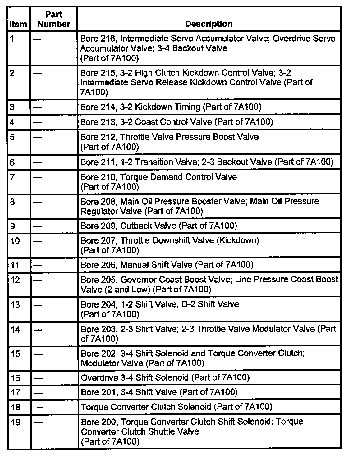 Bore Location, Main Control Valve Body (Part 1 Of 2):