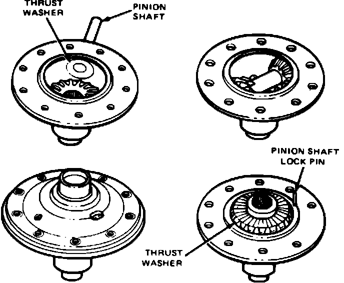 3. Place second differential pinion and thrust washer in position and drive pinion shaft into place, carefully aligning pinion shaft lockpin holes.