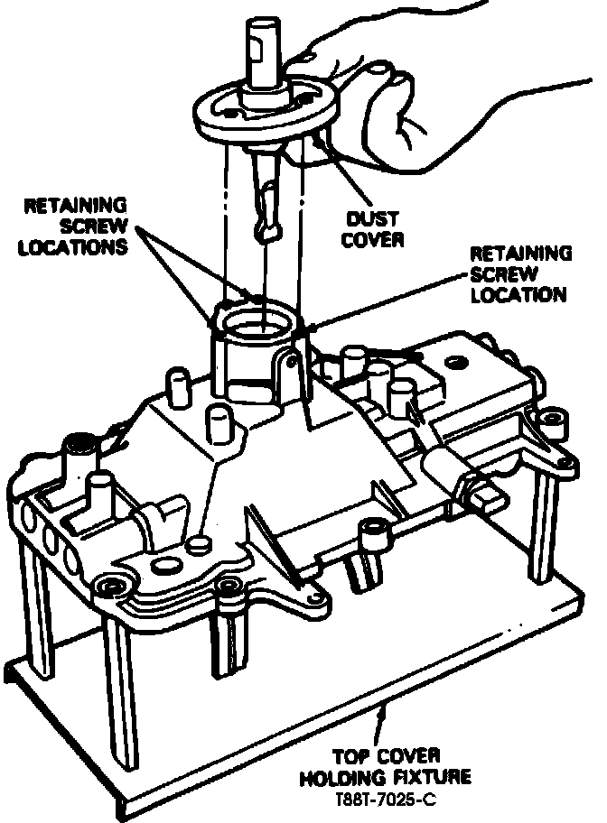 22. Position lower shift lever and dust cover assembly into top cover, then install three retaining screws and torque to specifications.