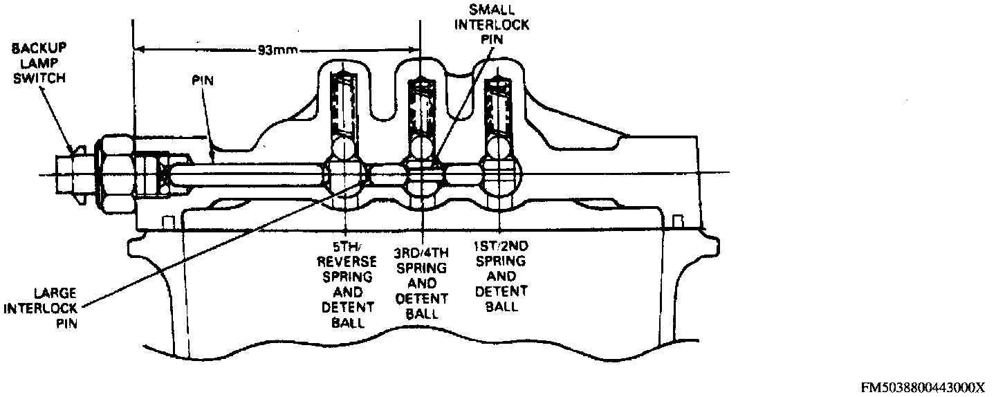 20. Insert interlock pins into 1st/2nd and 3rd/4th shift rails. Ensure large and small interlock pins are installed into their original positions. Improper installation of interlock pins will prevent activation of neutral switch and/or back-up lamp switch.