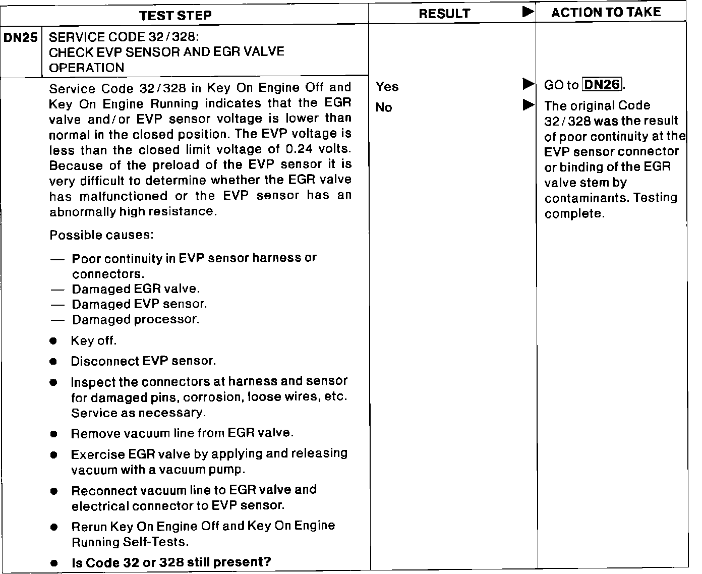 DN25 - Service Code 32/328: Check EVP Sensor and EGR Valve