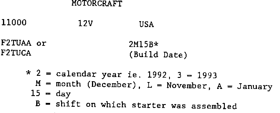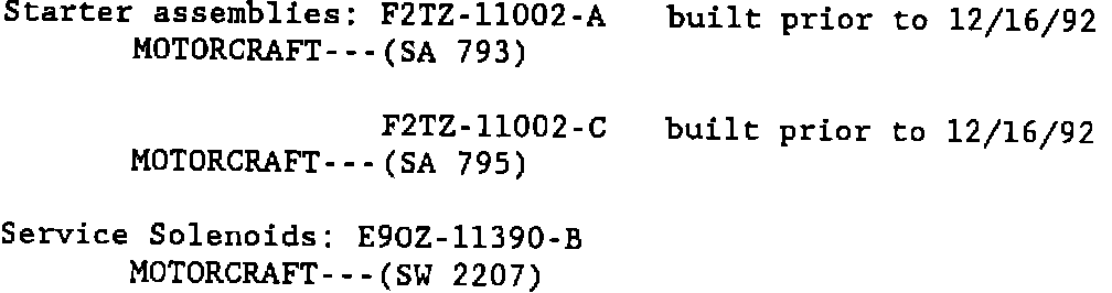 Starter assemblies with a production date equal to or less than 2M15 (December 15, 1992) are affected by this program.