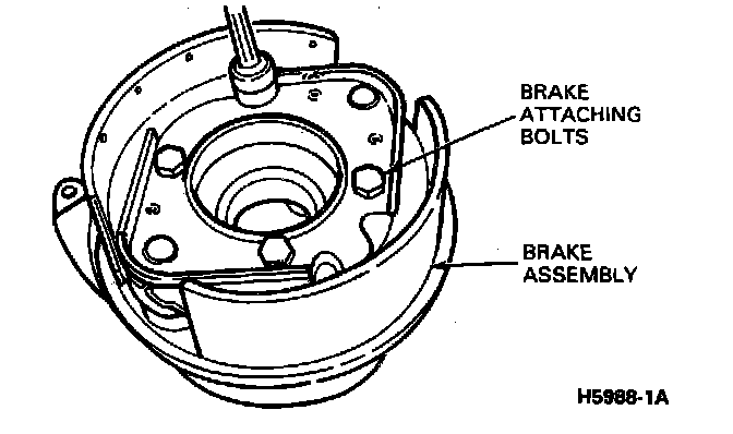 8. Remove the four bolts attaching the splash shield and brake assembly to the case. Remove the brake assembly and splash shield from the case.