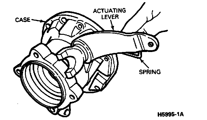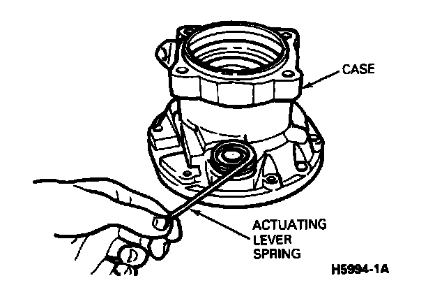 5. Install the actuating lever spring in the boss in the case.