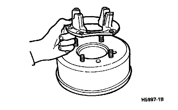 1. Using new brake shoe and lining assemblies, install new Shoe-to-shoe springs into the lower holes of the brake shoes.