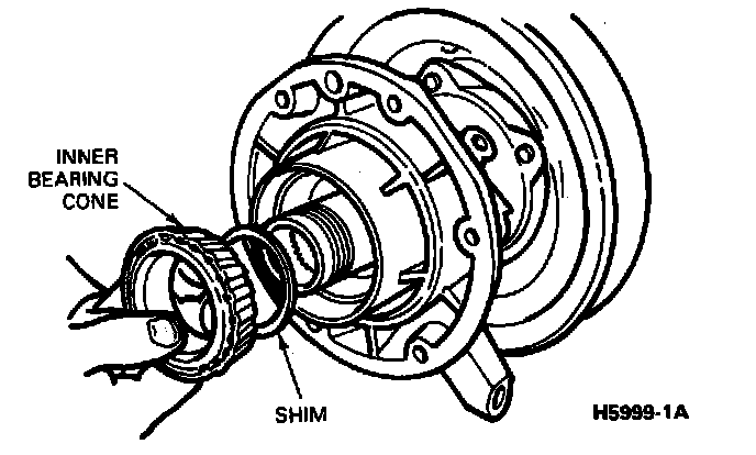 22. If required, remove the inner bearing cone and add the necessary additional shims to obtain the specified end play.
