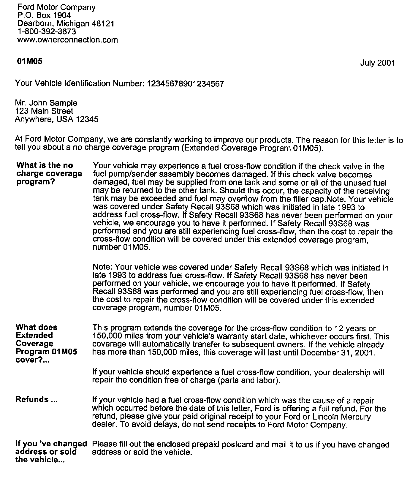 Recall - Fuel Cross-Flow Extended Coverage