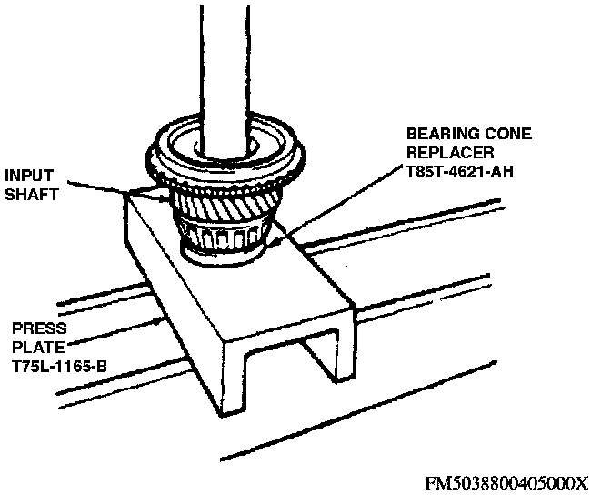 3. Place bearing on input shaft, then the bearing cone replacer tool No. T85T-4621-AH over bearing.