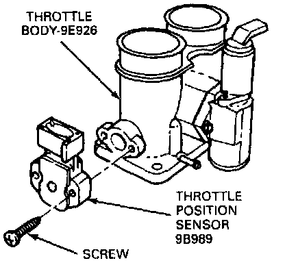 CAUTION: Slide rotary tangs into position over throttle shaft blade, then rotate throttle position sensor CLOCKWISE ONLY to installed position. Failure to install the throttle position sensor in this manner may result in excessive idle speeds.