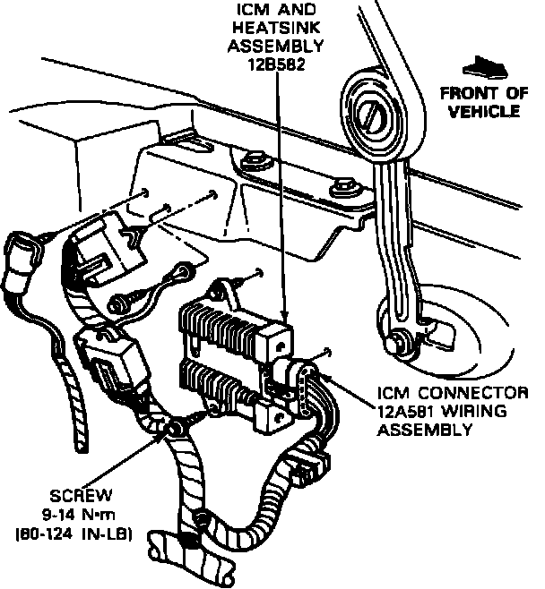 3. Install the ignition module/heatsink assembly on the fender and install the retaining screws. Tighten the screws to 80-124 lb. in. (9-14 N-m).