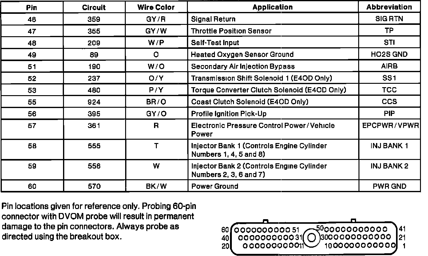 Powertrain Control Module (PCM) Connector Pin Useage: