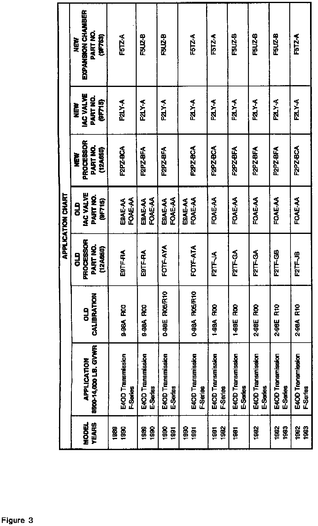2. Replace the Powertrain Control Module (see Application Charts in Figures 2 and 3). Refer to the appropriate Service Manual for removal and installation procedures.
