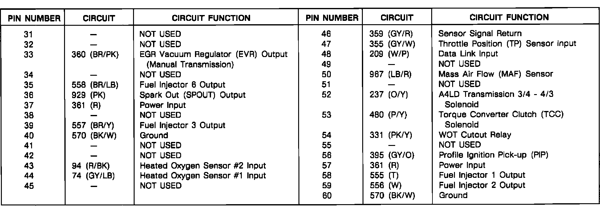 Powertrain Control Module (PCM) Connector Pin Useage: