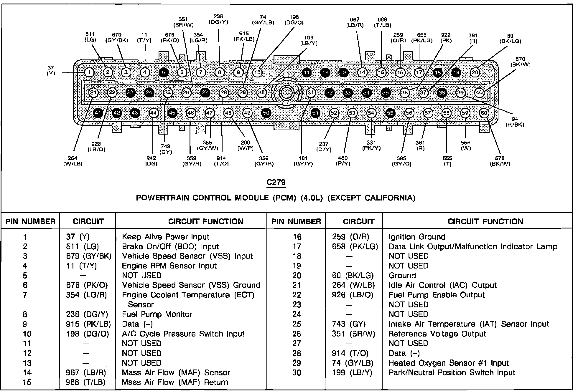 Powertrain Control Module (PCM) Circuit Function 4.0L: